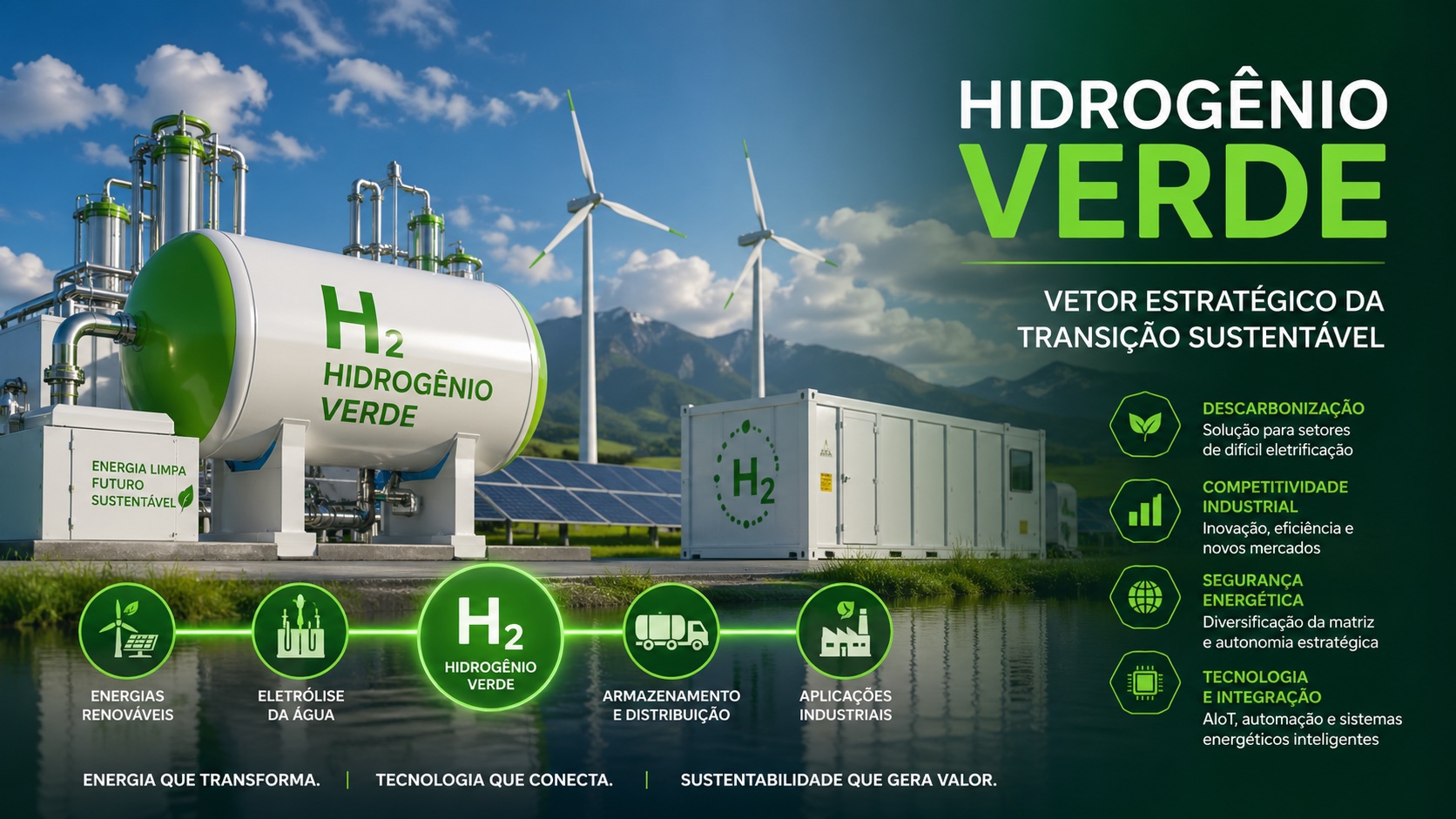 O e-book Hidrogênio Verde: Vetor Estratégico da Transição Sustentável apresenta uma leitura estruturada e consistente sobre o papel do hidrogênio verde como elemento central na reconfiguração da matriz energética global. A obra vai além de uma abordagem técnica isolada e posiciona o tema como um ativo estratégico transversal, integrando dimensões de descarbonização, segurança energética e competitividade industrial. A tese central é clara: o hidrogênio verde deve ser compreendido como infraestrutura crítica da nova economia energética, especialmente em setores de difícil eletrificação.